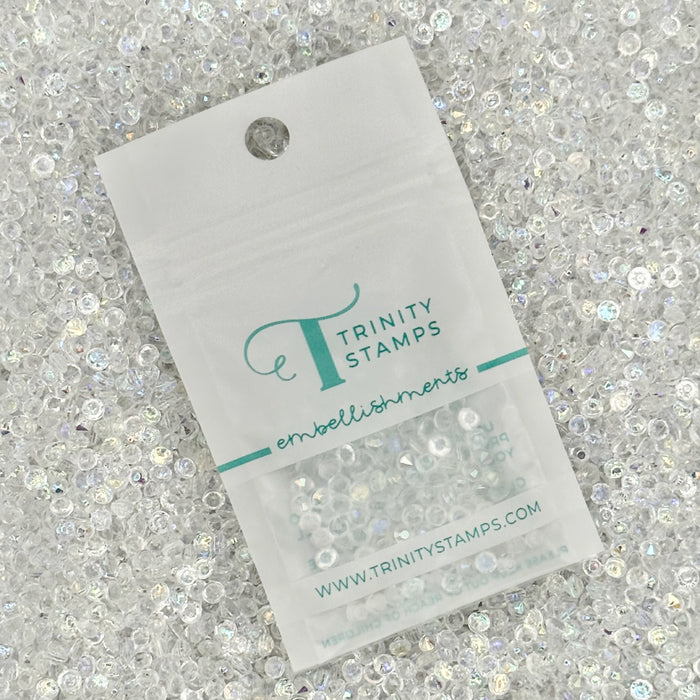 3mm tiny transparent iridescent dimensional diamonds.