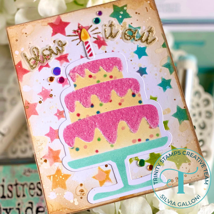This versatile 8-piece die set lets you create paper cakes perfect for any celebration. The biggest die stands about 4 inches tall. Mix and match the cut-out shapes and their negatives for unique designs. For extra creative flair, combine it with the matching Cake Layers 6x6 Stencil (sold separately) and watch your projects come to life!