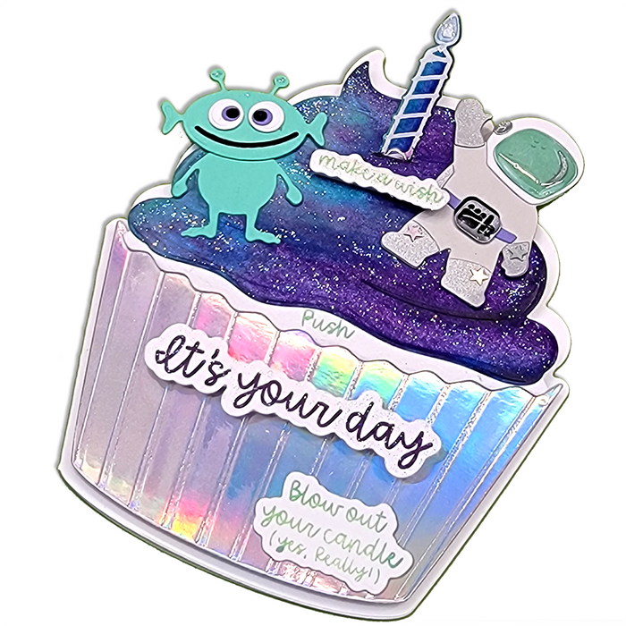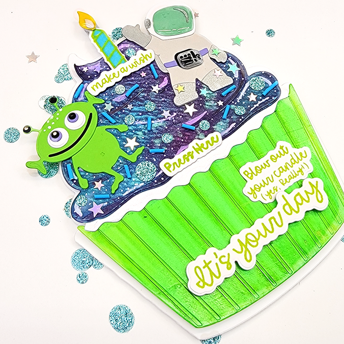 VickyH This little alien die set makes the cutest little character. My grandsons absolutely love him too. Great for kids cards or kids at heart :)
