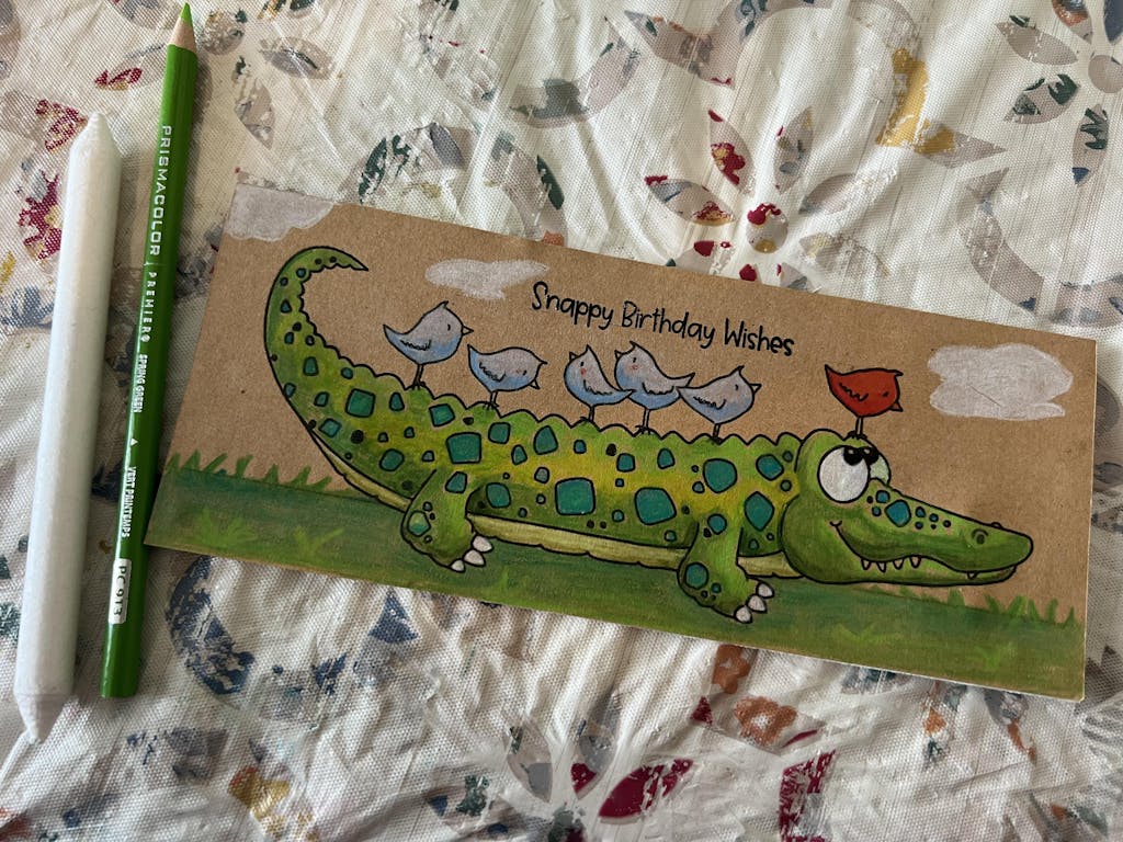 SarahC This gator is perfect for student cards since a gator is the school mascot. Using this for holiday cards because special students really love getting mail and he is a happy gator.