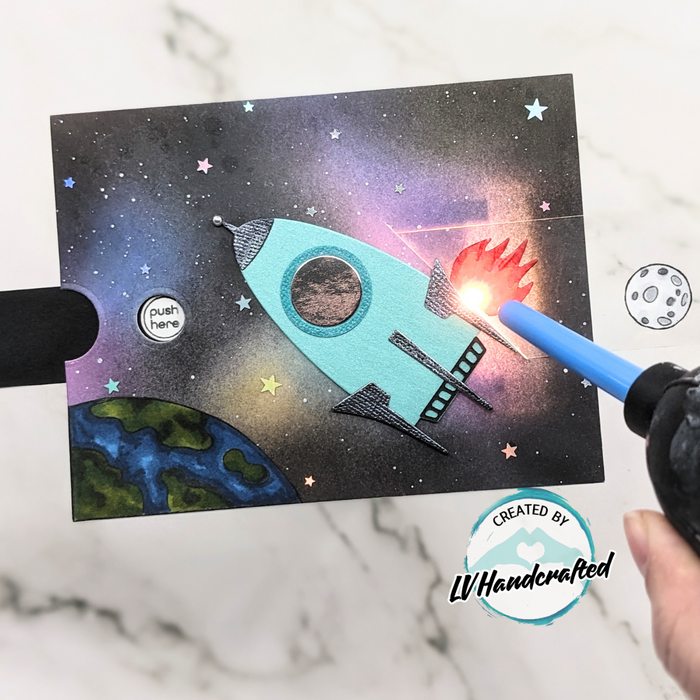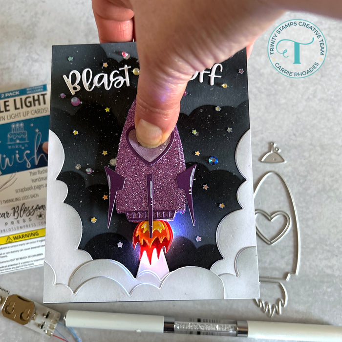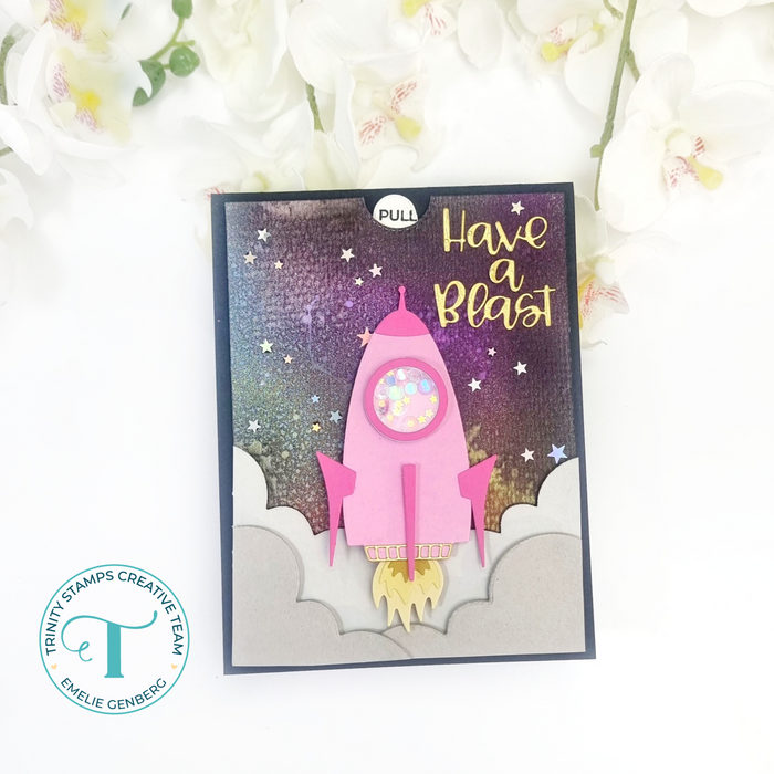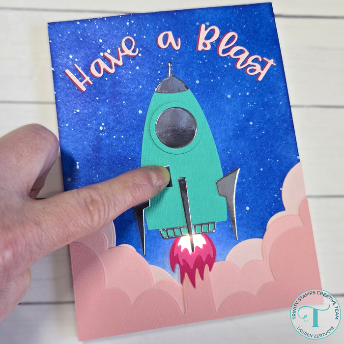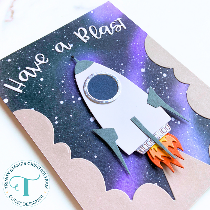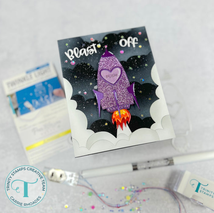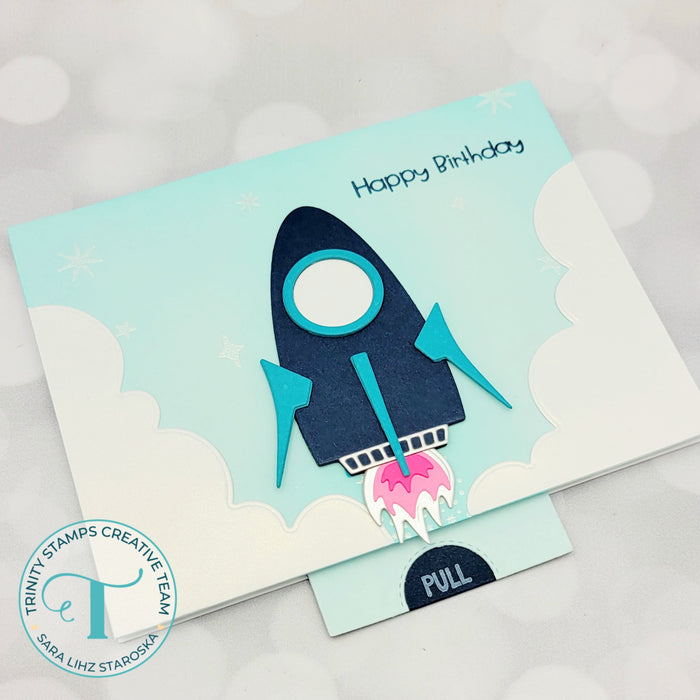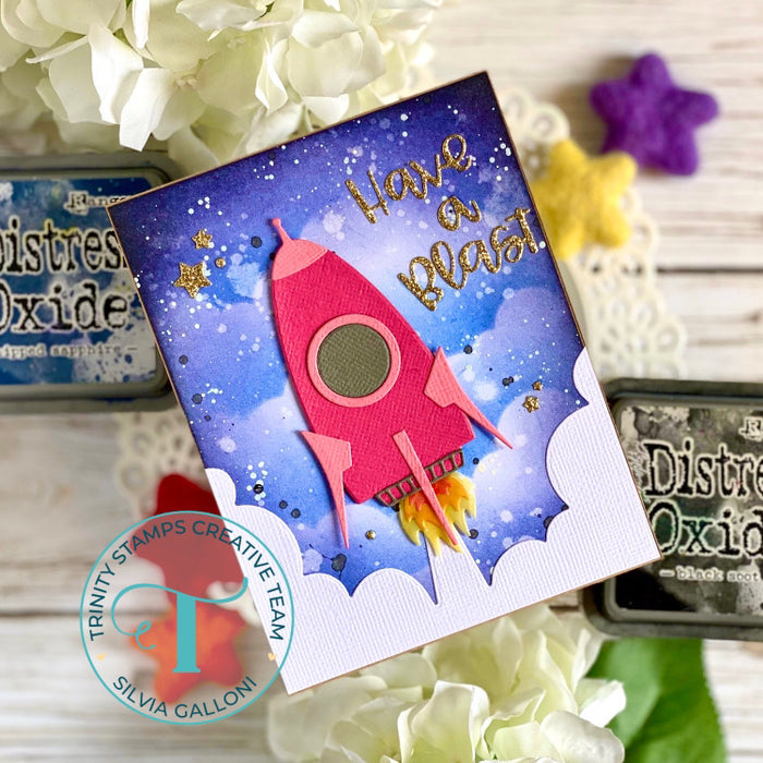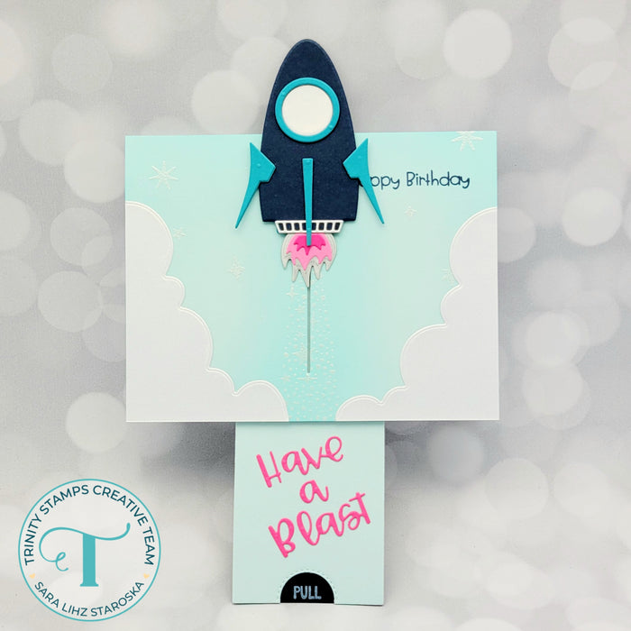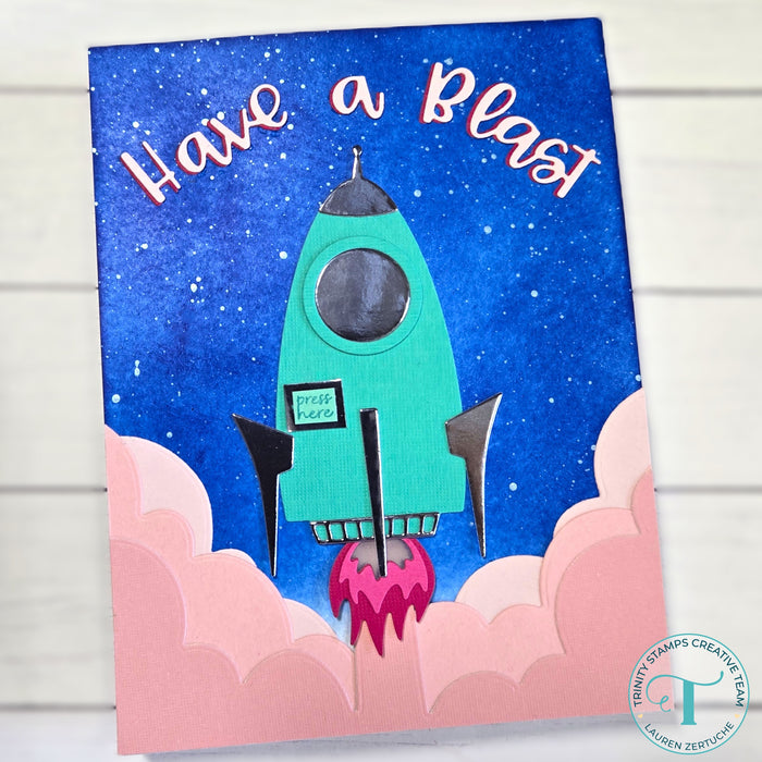 Get ready to have a blast with this awesome 15 piece die set! The rocket-shaped dies stand at 4 inches tall and come with the option of a circle or heart-shaped window. Plus, there are two cloud and exhaust dies, as well as dies to create the fun sentiments "Blast Off" or "Have A Blast".