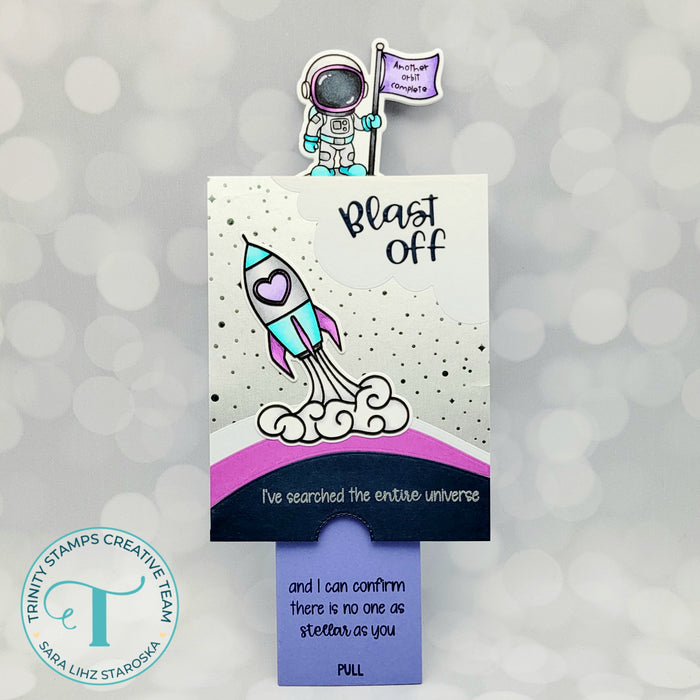 Kathy Z Great set of dies to make interactive card making easier. The little rocket ship is cute and works great with any outer space dies and stamps you may have. I love this additional set of card essentials.