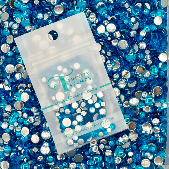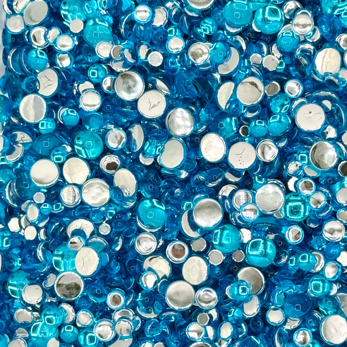 This silver backed transparent bauble mix contains four sizes of flat-back acrylic "pearls" (3mm,4mm,5mm, 6mm)