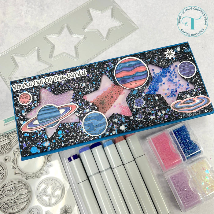 Get ready for stamping that's truly out of this world! With a whopping 19 stamps included, create your own epic solar system in no time flat!